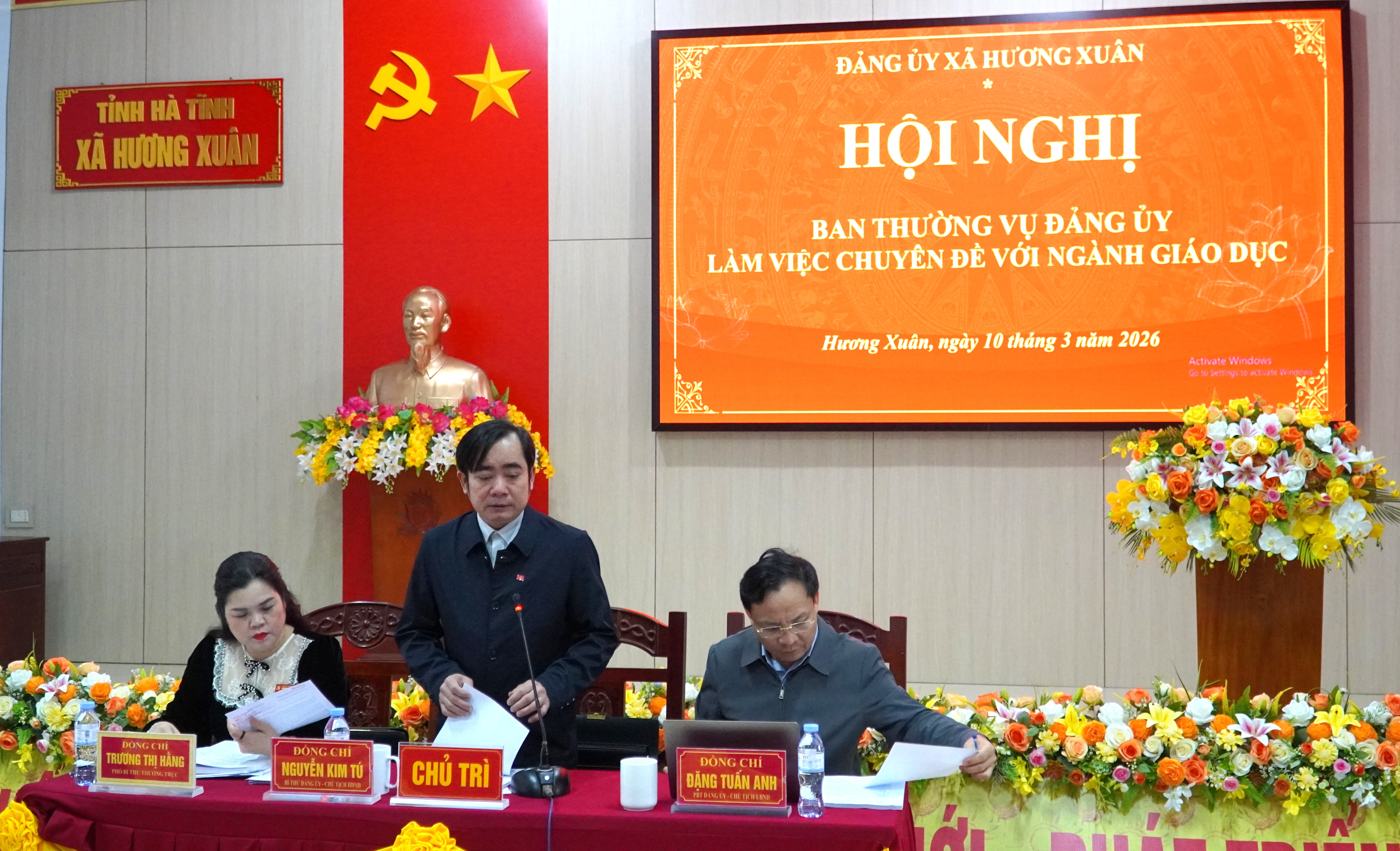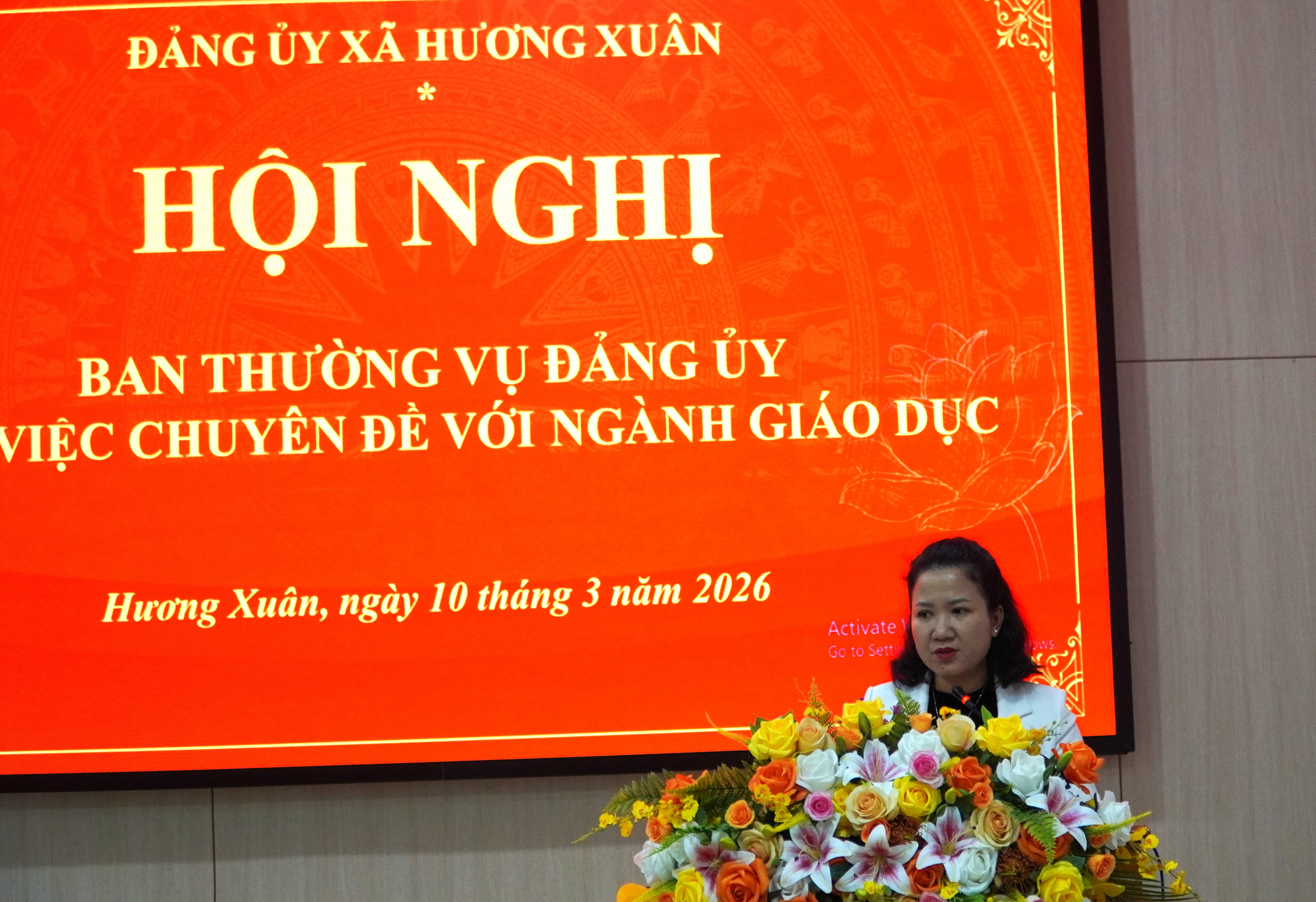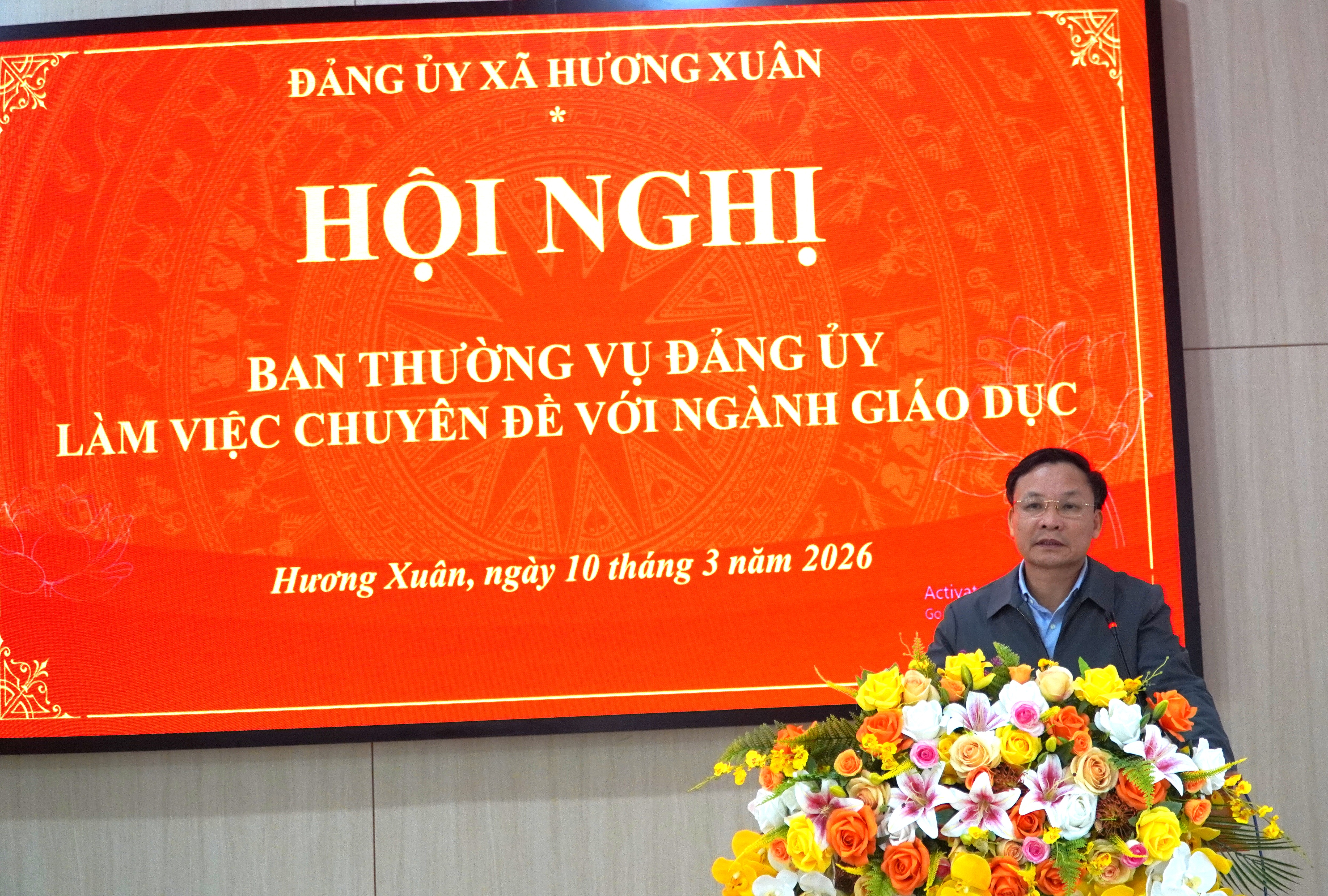 Sáng ngày 10/3/2026, Ban Thường vụ Đảng ủy xã Hương Xuân tổ chức Hội nghị làm việc chuyên đề với ngành Giáo dục nhằm đánh giá tình hình hoạt động của các trường học trên địa bàn và đề ra các giải pháp nâng cao chất lượng giáo dục trong thời gian tới.