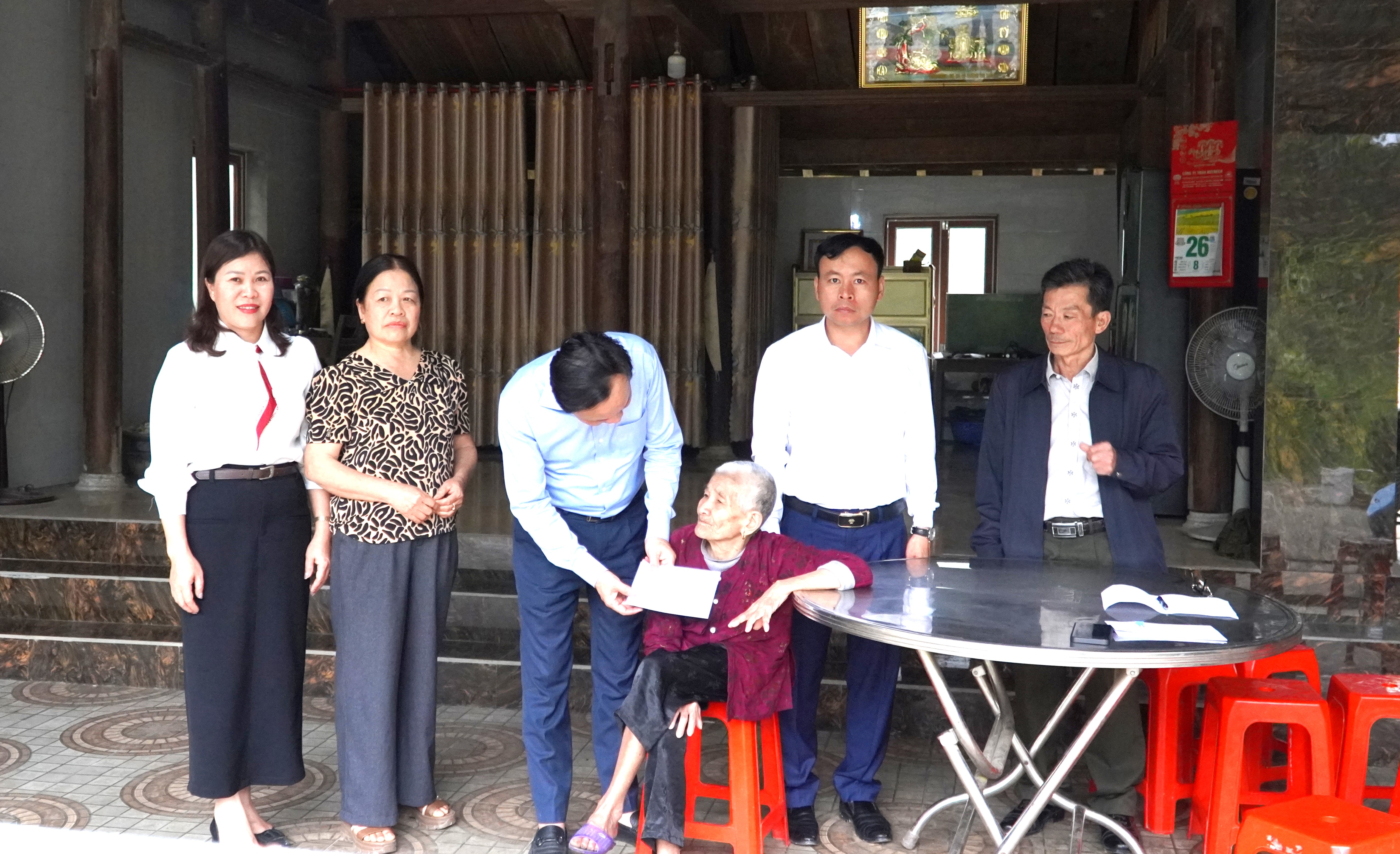Đồng chí Đặng Tuấn Anh - Phó Bí thư Đảng uỷ, chủ tịch UBND xã cùng các đồng chí đi trong đoàn cũng đã đến thăm hỏi, tặng quà, động viên các đảng viên Hồ Thứ, Đinh Thị Cận và Dương Văn Hồng Tại Chi bộ Khe Đập và Chi bộ Bản Giàng I