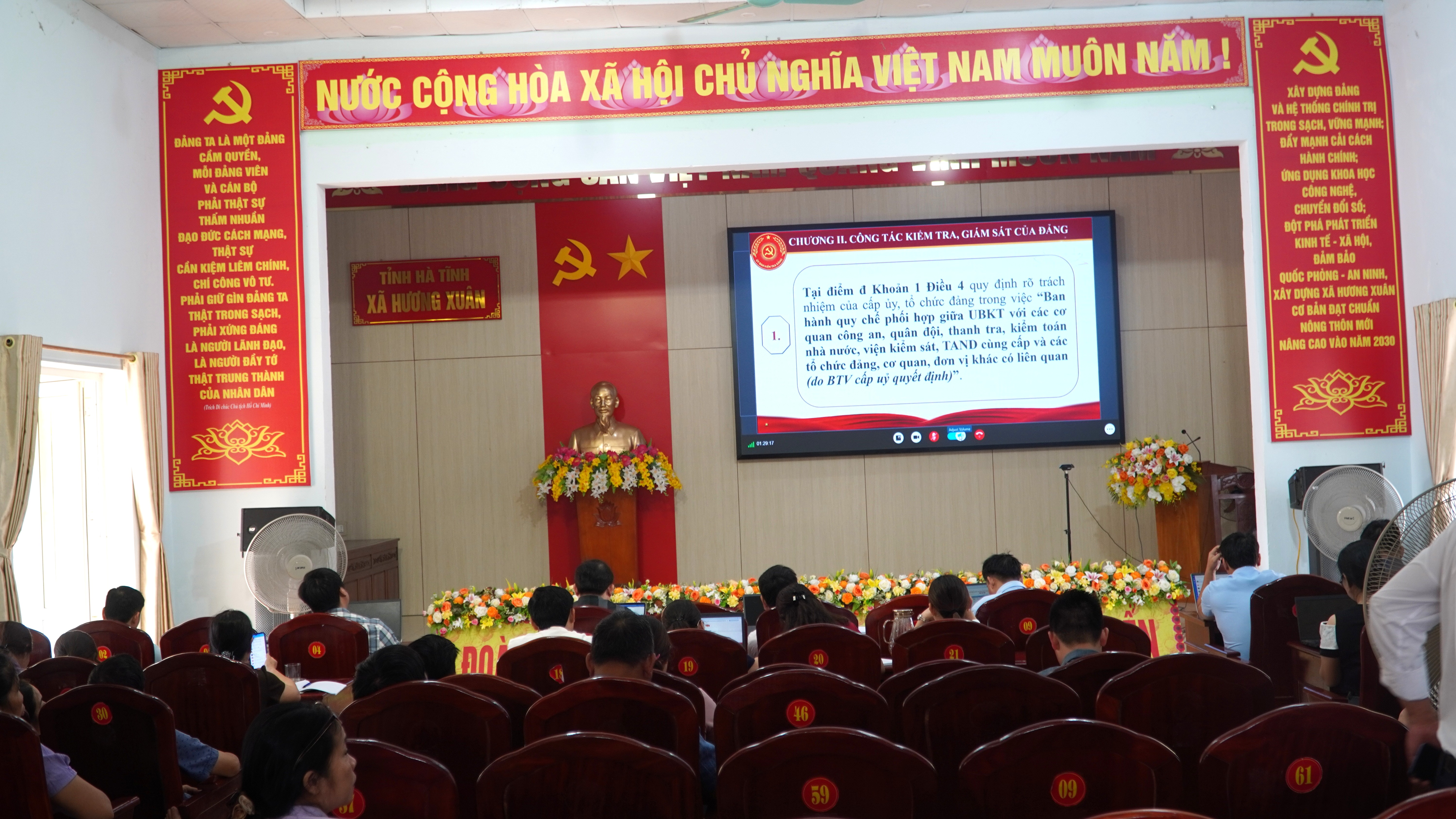 Tại điểm cầu xã Hương Xuân, hội nghị được kết nối trực tuyến với sự tham dự của các đồng chí trong Ban Thường vụ Đảng ủy; cán bộ, công chức cơ quan UBKT Đảng ủy; các đồng chí Ủy viên UBKT; bí thư chi bộ và đảng viên phụ trách công tác kiểm tra, giám sát tại các chi bộ trực thuộc; cùng các thành phần liên quan theo giấy mời của Đảng ủy xã.