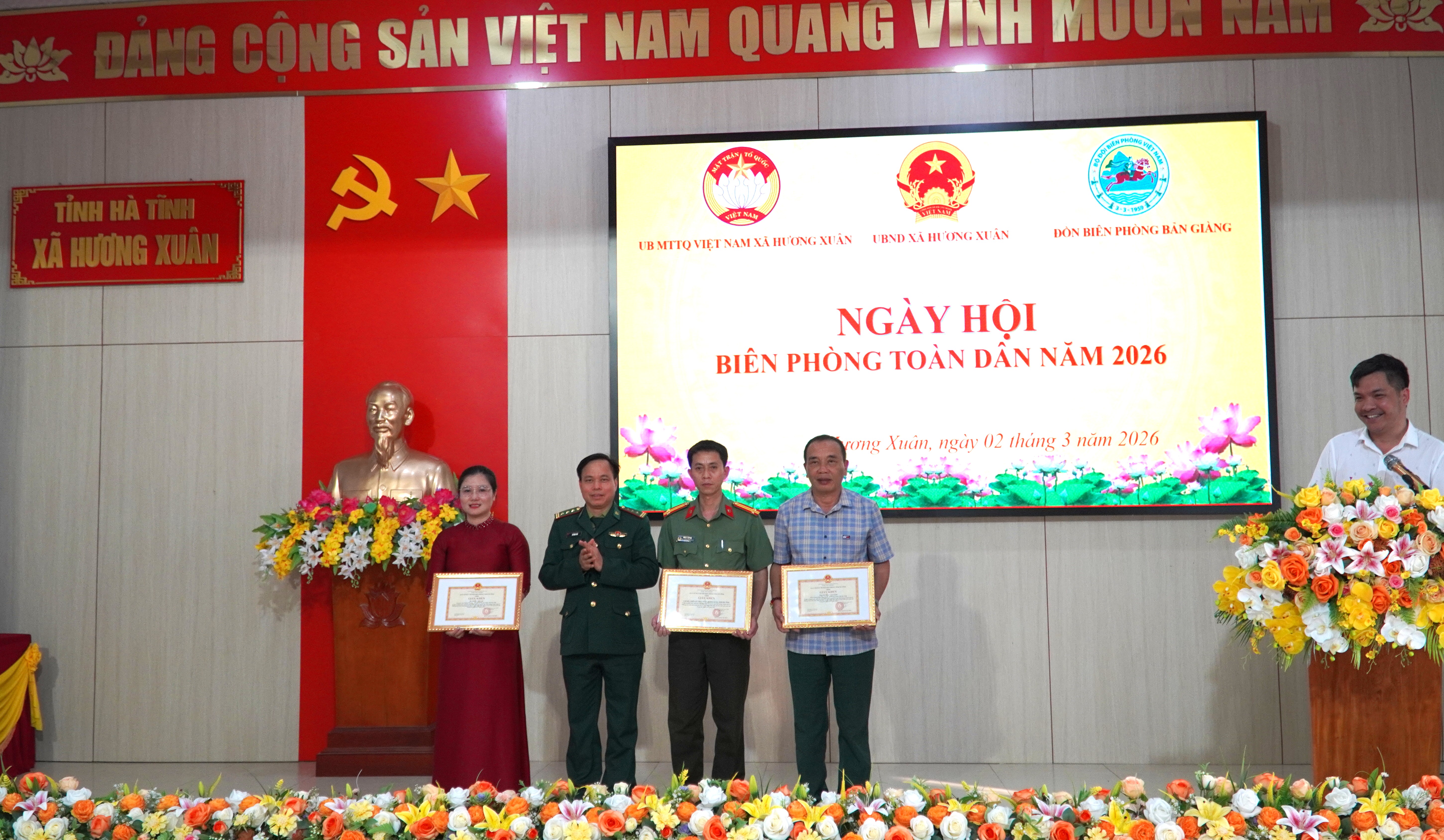 Chiều ngày 02/3/2026, UBND – Ủy ban MTTQ Việt Nam xã Hương Xuân phối hợp với Đồn Biên phòng Bản Giàng long trọng tổ chức “Ngày hội Biên phòng toàn dân” năm 2026 nhân kỷ niệm 67 năm Ngày truyền thống Bộ đội Biên phòng (03/3/1959 – 03/3/2026) và 37 năm Ngày Biên phòng toàn dân (03/3/1989 – 03/3/2026).