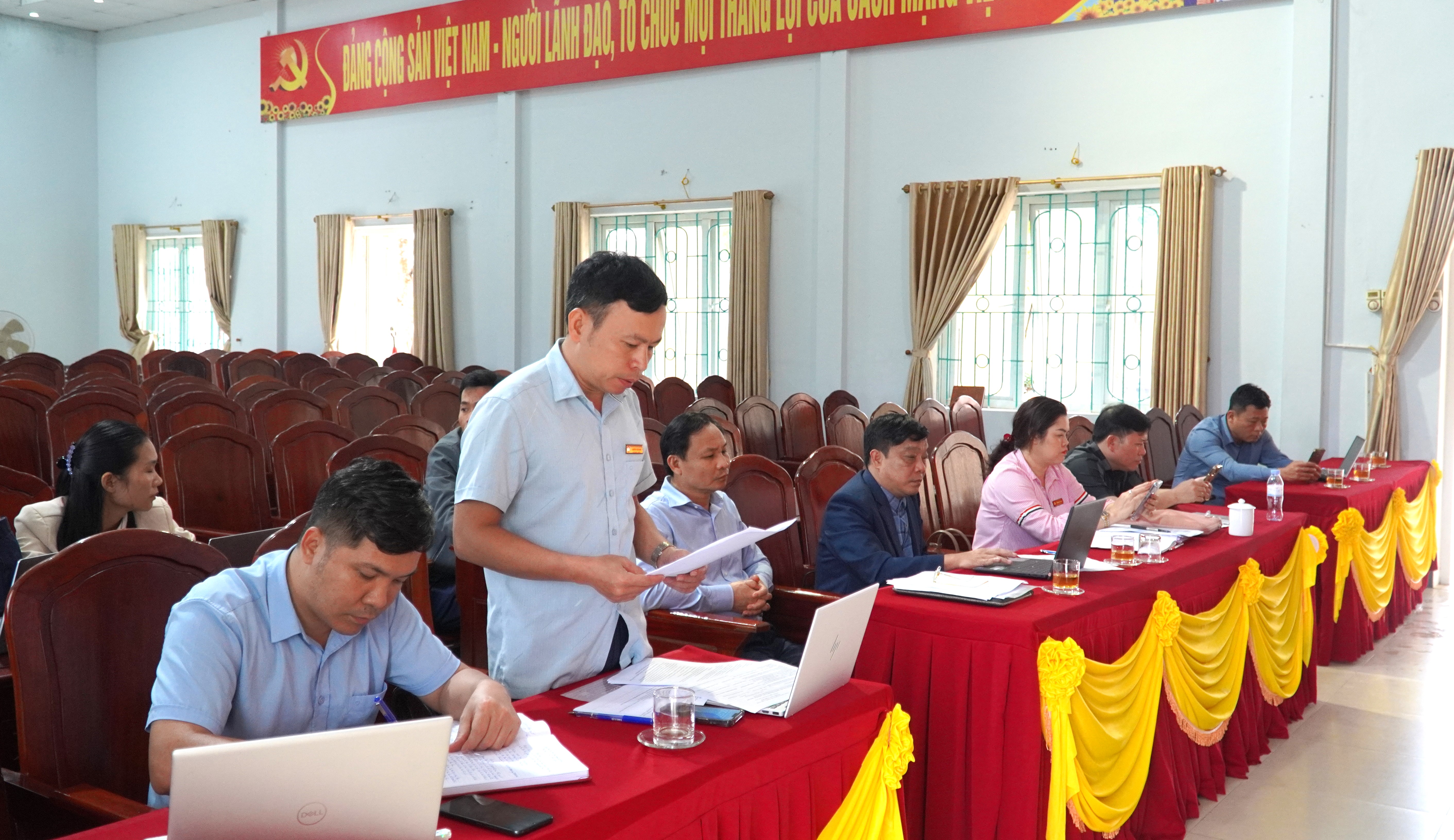 Tham dự và chủ trì hội nghị có đồng chí Nguyễn Kim Tú – Bí thư Đảng ủy, Chủ tịch HĐND xã, Trưởng Ban Chỉ đạo bầu cử xã, Chủ tịch Ủy ban bầu cử xã; đồng chí Trương Thị Hằng – Phó Bí thư Thường trực Đảng ủy, Phó Trưởng ban Thường trực Ban Chỉ đạo bầu cử xã; đồng chí Trần Tuấn Anh – Ủy viên Ban Thường vụ Đảng ủy, Phó Chủ tịch HĐND xã, Phó Chủ tịch Thường trực Ủy ban bầu cử xã. Cùng dự có các đồng chí trong Thường trực Ủy ban bầu cử xã; các Phó Chủ tịch UBND xã; Ban Thường trực Ủy ban MTTQ Việt Nam xã; Thư ký Ủy ban bầu cử xã.