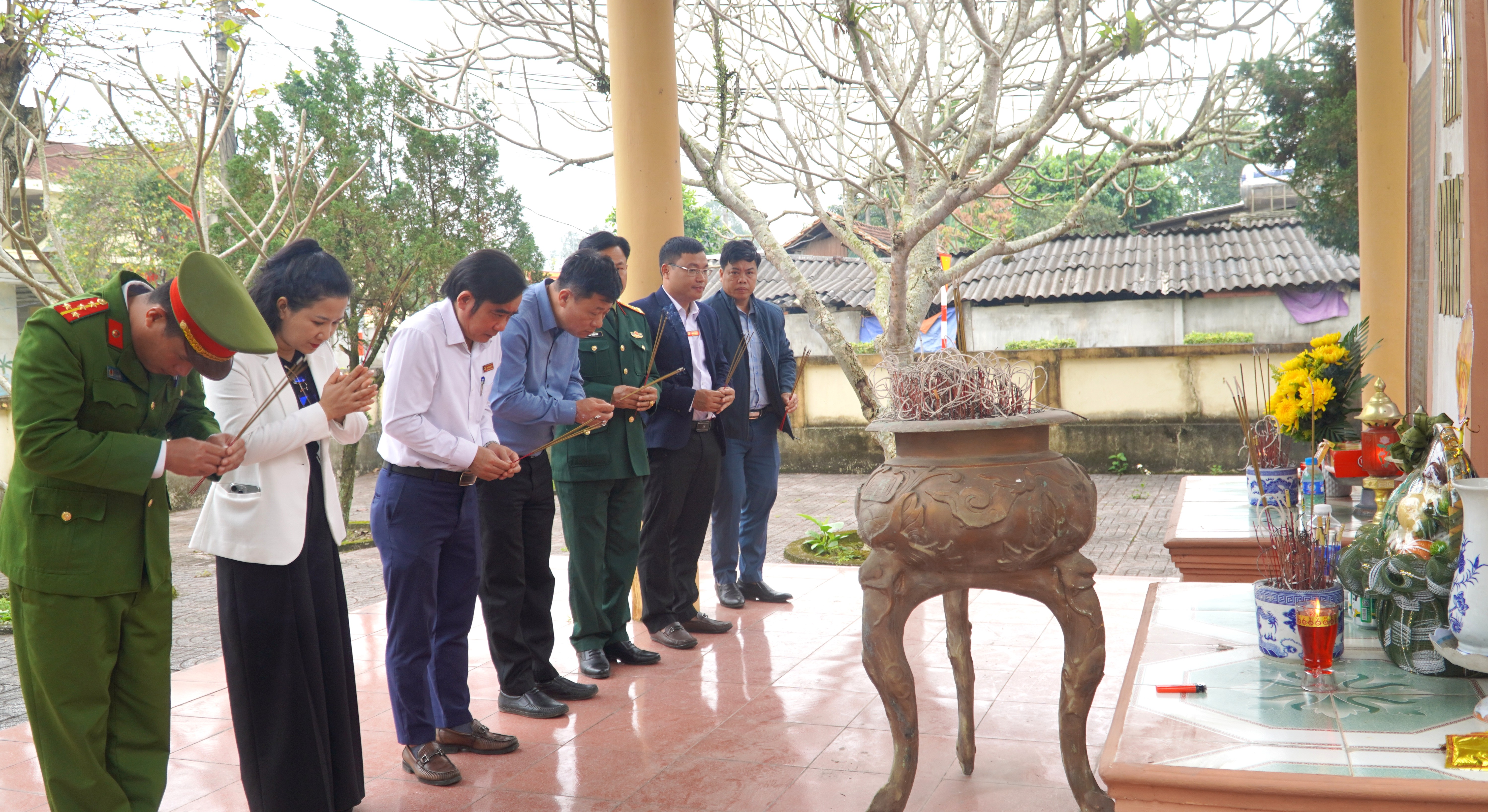 Buổi lễ dâng hương diễn ra trong không khí trang nghiêm, thành kính. Sau phút mặc niệm tưởng nhớ các anh hùng liệt sĩ, các đồng chí lãnh đạo và đại biểu lần lượt lên dâng hương, thể hiện đạo lý “Uống nước nhớ nguồn”, “Đền ơn đáp nghĩa” của dân tộc.