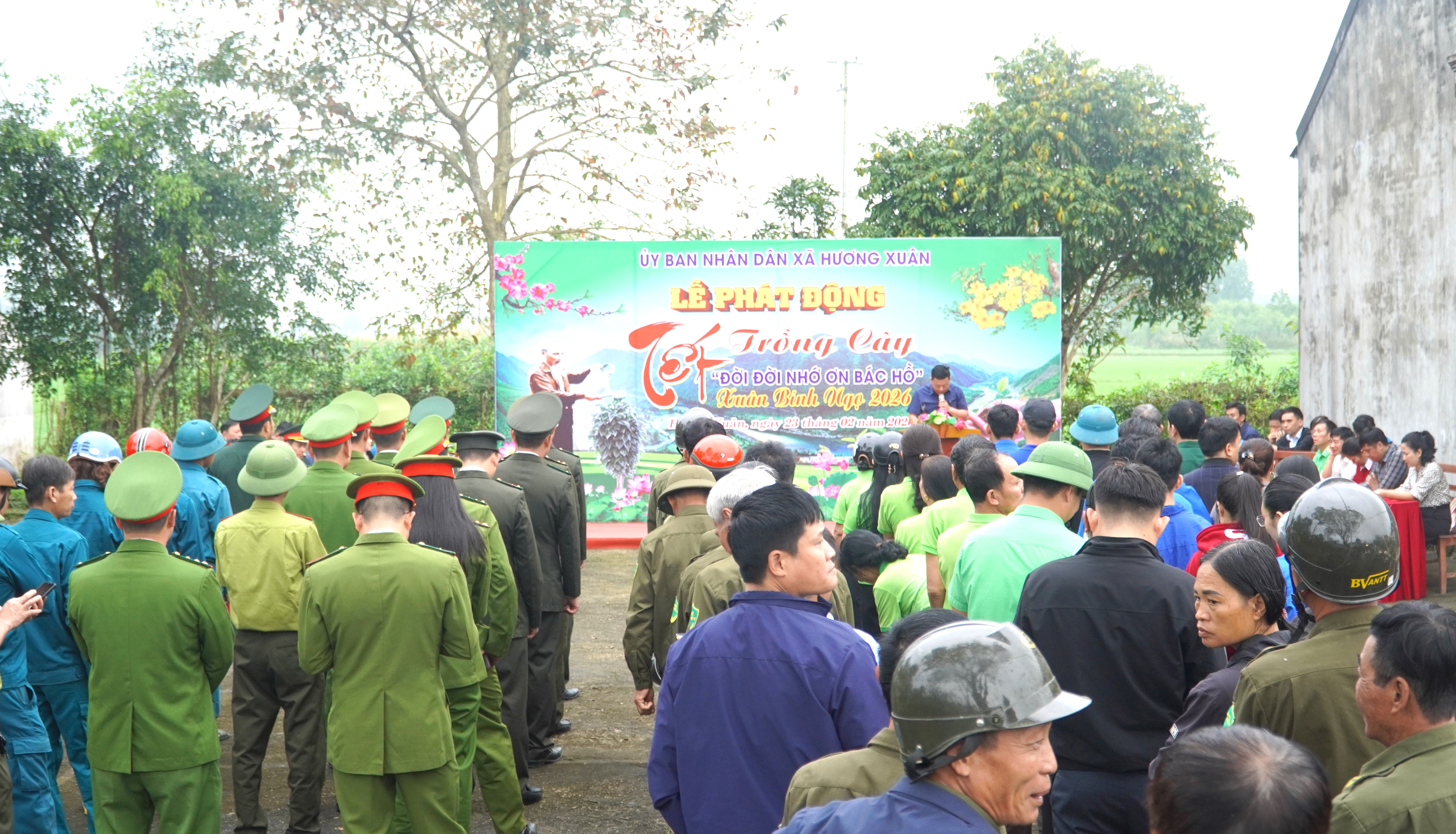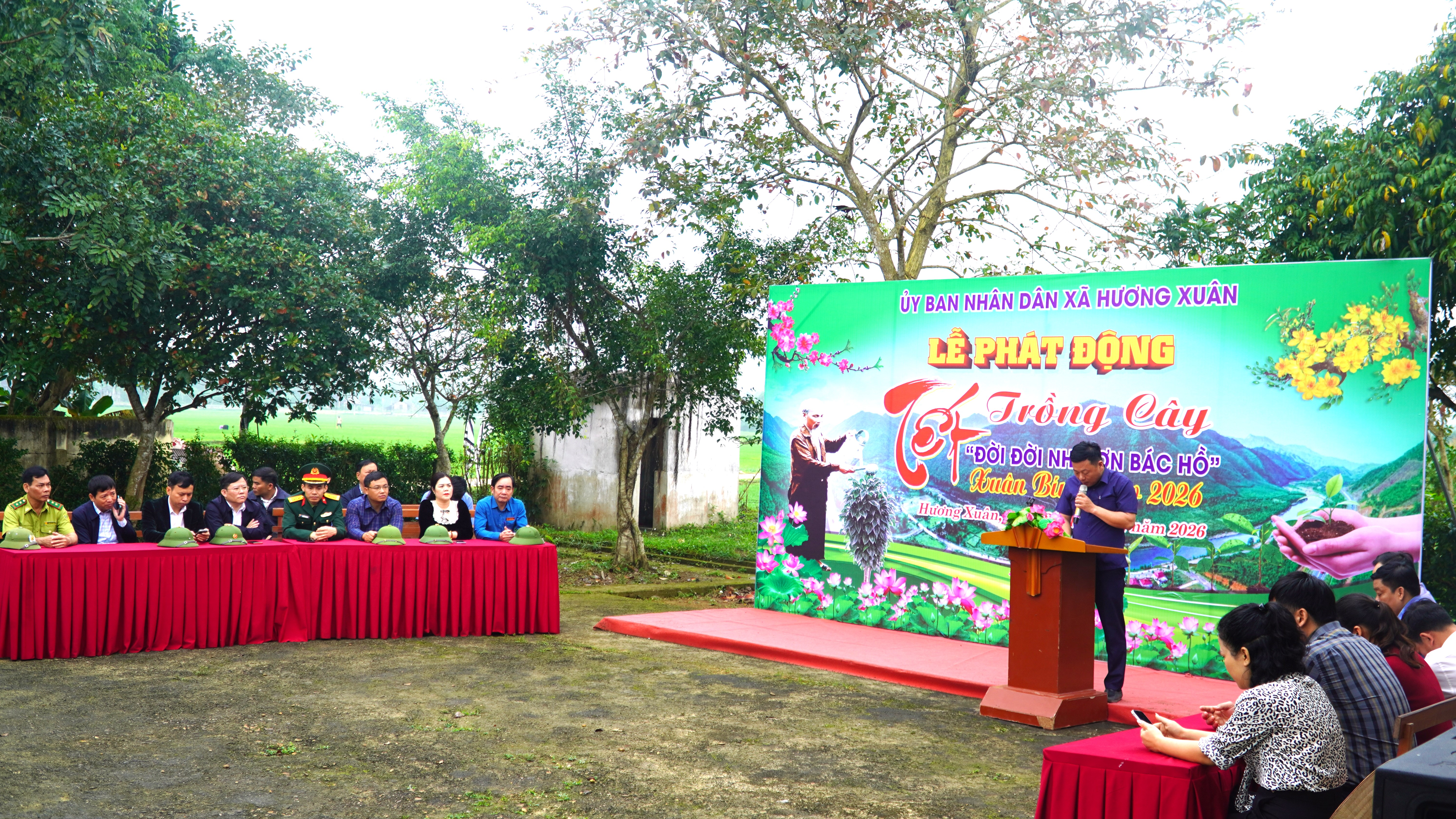 Trong không khí sôi nổi của phong trào “Tết trồng cây đời đời nhớ ơn Bác Hồ”, sáng ngày 23/02/2026 (tức ngày 07 tháng Giêng năm Bính Ngọ), tại Nhà văn hóa thôn Hòa Sơn, Ủy ban nhân dân xã Hương Xuân đã tổ chức Lễ phát động “Tết trồng cây đời đời nhớ ơn Bác Hồ” đầu Xuân Bính Ngọ năm 2026.