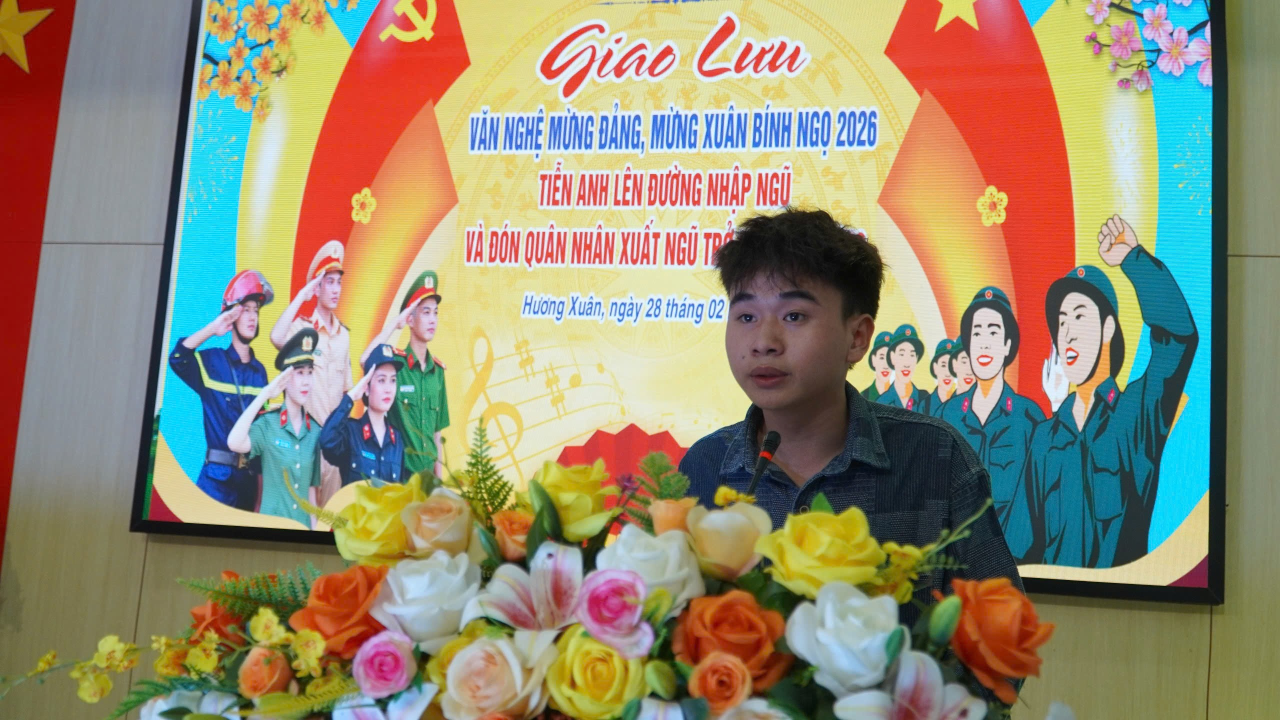 Tiếp đến đồng chí Thái Hoàng Vũ, đại diện cho 18 quân nhân hoàn thành nghĩa vụ quân sự và công an nhân dân trở về địa phương phát biểu bày tỏ lòng biết ơn đối với Đảng, Nhà nước và chính quyền địa phương, đồng thời chia sẻ những trải nghiệm trong suốt quá trình phục vụ quân đội và công an.