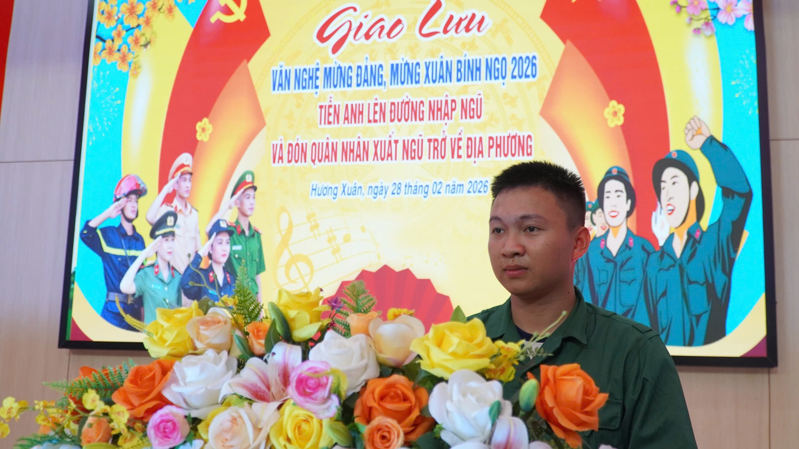 Chương trình giao lưu văn nghệ Mừng Đảng, Mừng Xuân Bính Ngọ, tiễn anh lên đường và đón quân nhân xuất ngũ trở về địa phương năm 2026 là một sự kiện quan trọng, thể hiện lòng tri ân đối với các quân nhân đã hoàn thành nhiệm vụ, đồng thời động viên tinh thần các tân binh sẵn sàng lên đường, xây dựng và bảo vệ Tổ quốc.