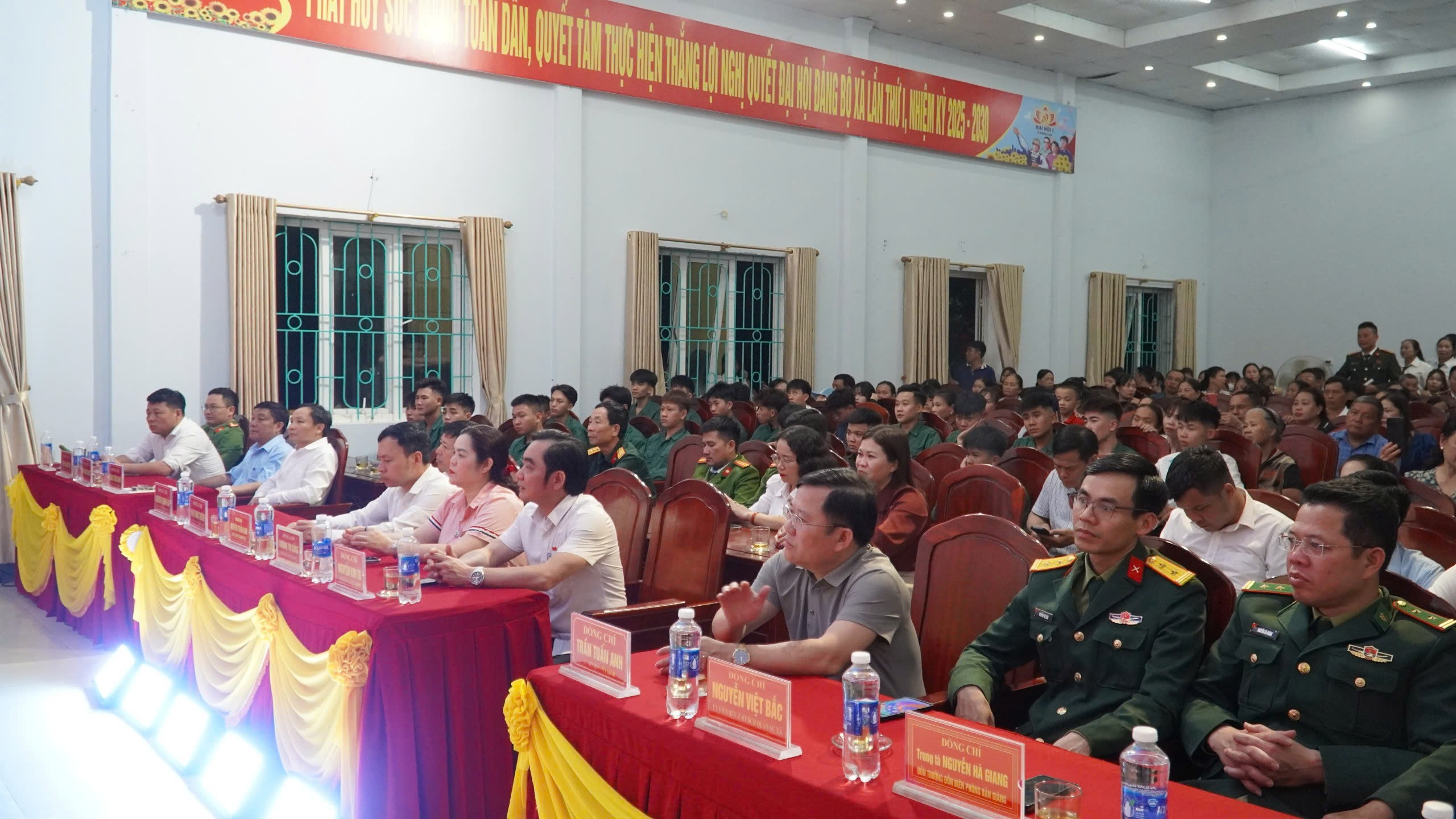 Đại diện lãnh đạo xã đồng chí Đặng Tuấn Anh - Phó Bí thư Đảng ủy, Chủ tịch UBND, chủ tịch Hội đồng nghĩa vụ quân sự xã, phát biểu ghi nhận những nỗ lực của các tân binh, đồng thời biểu dương các quân nhân đã hoàn thành xuất sắc nghĩa vụ quân sự và công an nhân dân. Đồng chí cũng gửi lời động viên đến các tân binh, giao nhiệm vụ cho họ phấn đấu hoàn thành nghĩa vụ quân sự với tinh thần trách nhiệm cao nhất, mang lại niềm tự hào cho gia đình và quê hương.