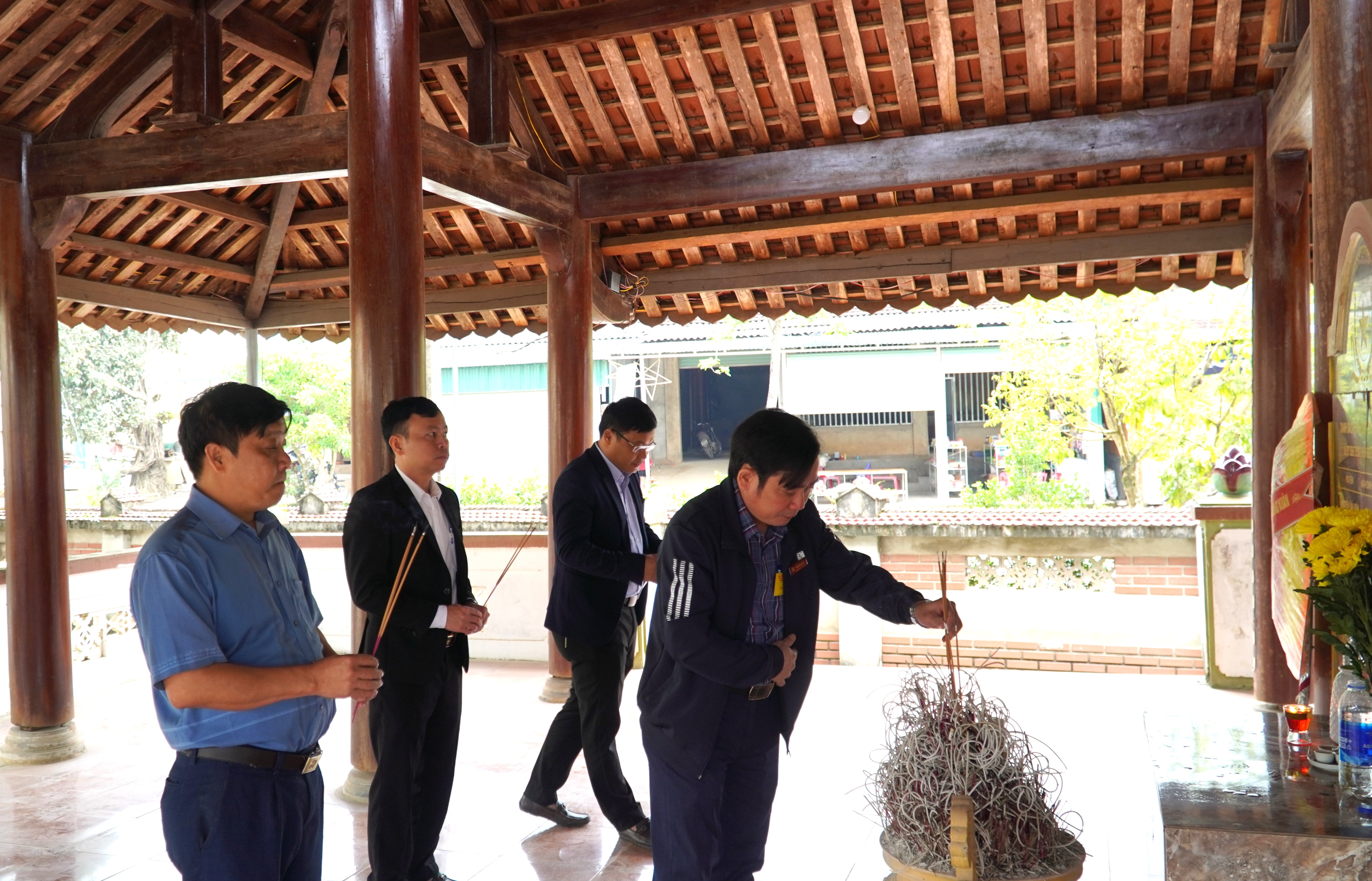 Trong không khí trang nghiêm, đoàn đại biểu đã đến dâng hoa, dâng hương tại 03 Nhà bia, tượng đài tưởng niệm liệt sĩ trên địa bàn xã, bày tỏ lòng thành kính và biết ơn sâu sắc đối với các anh hùng liệt sĩ đã hy sinh vì sự nghiệp đấu tranh giải phóng dân tộc, bảo vệ Tổ quốc và hạnh phúc của Nhân dân.