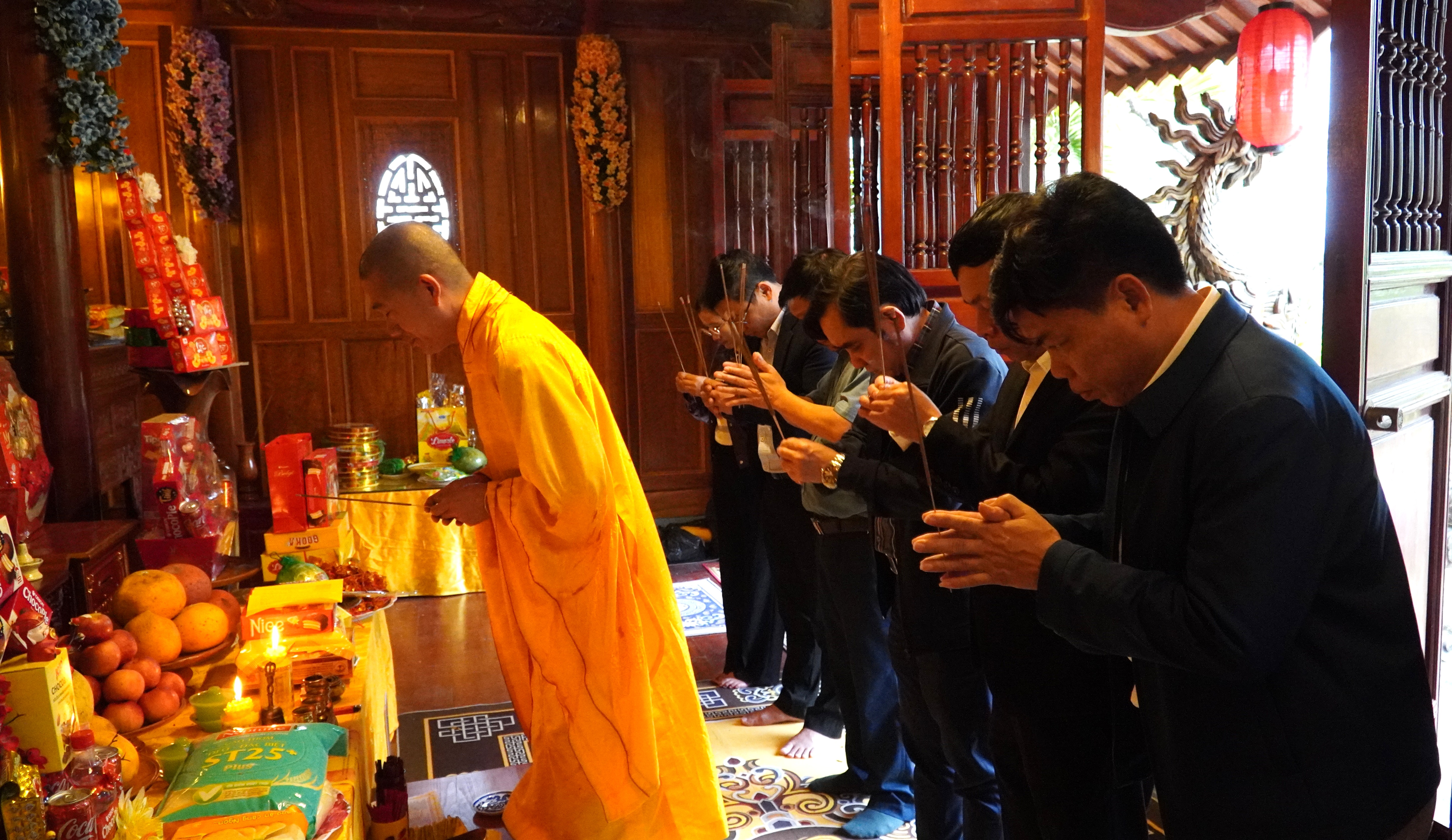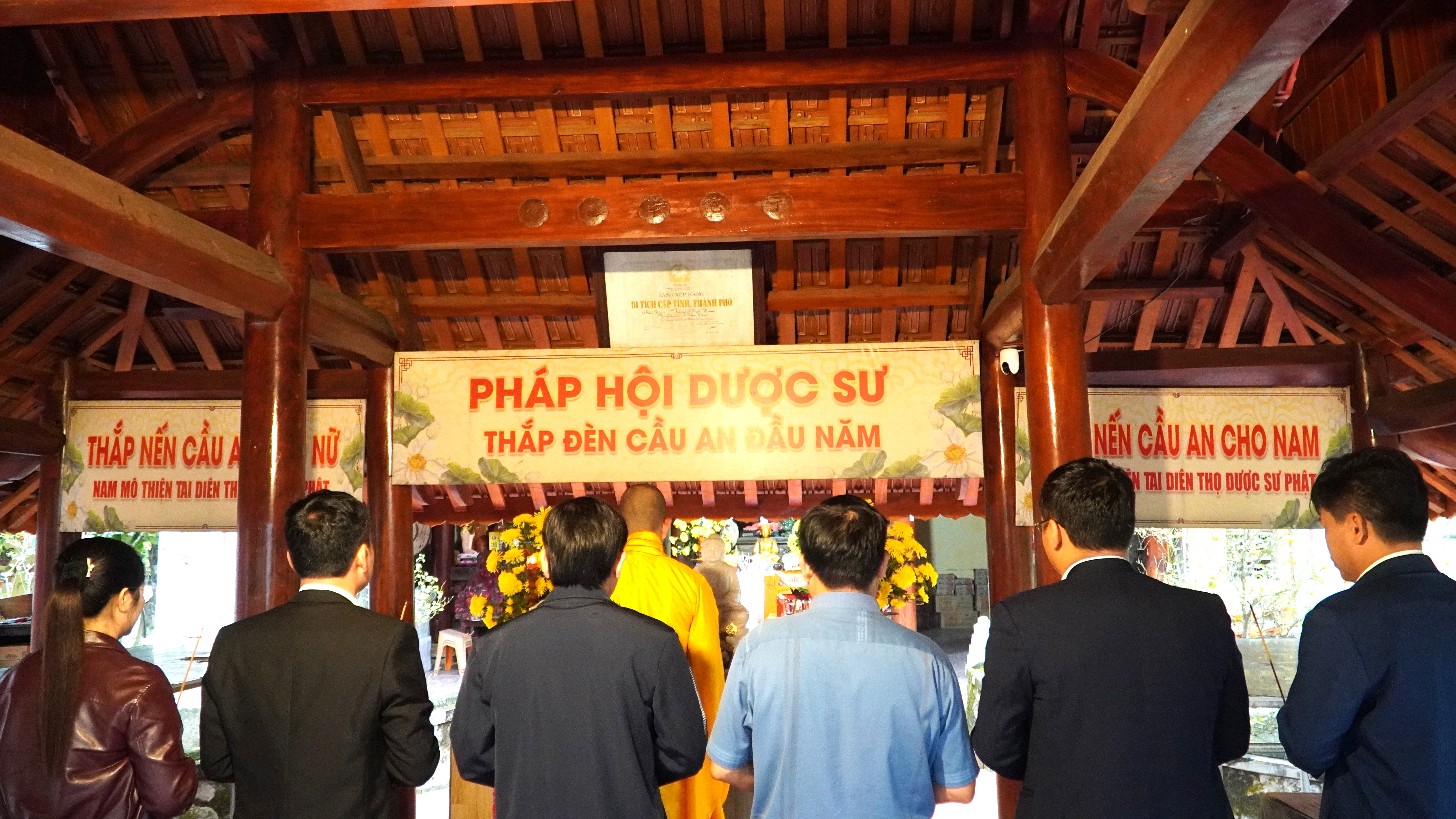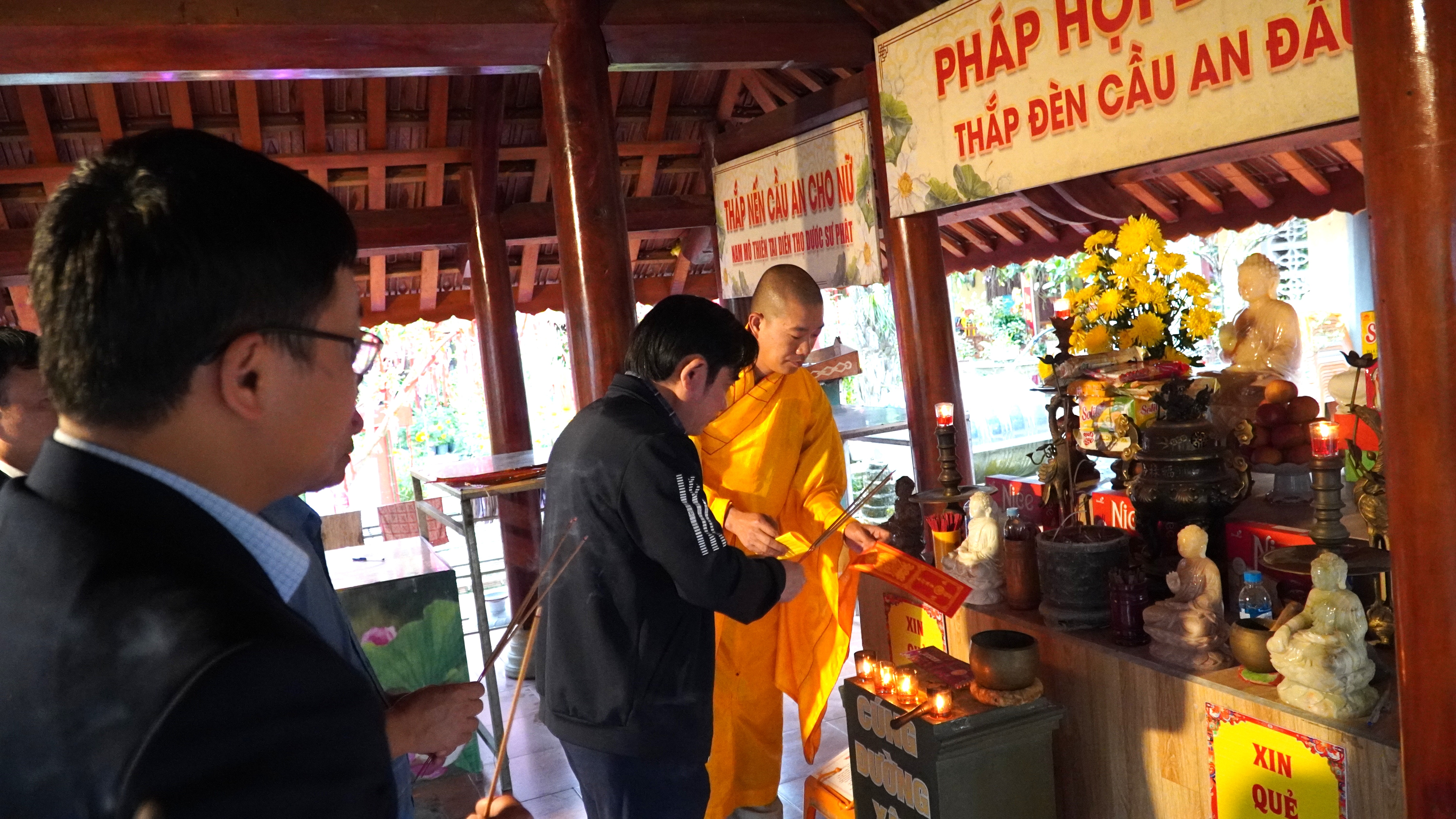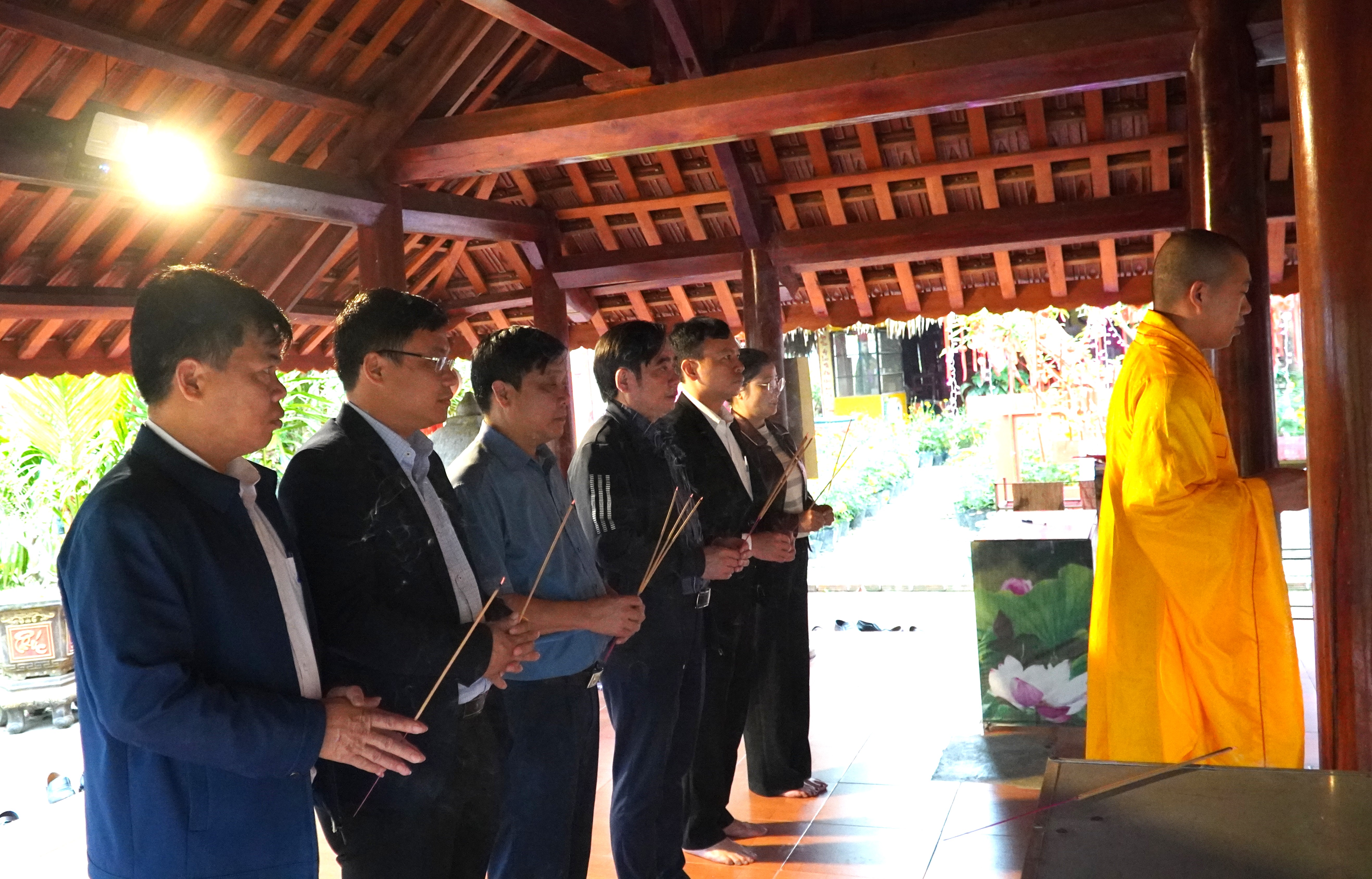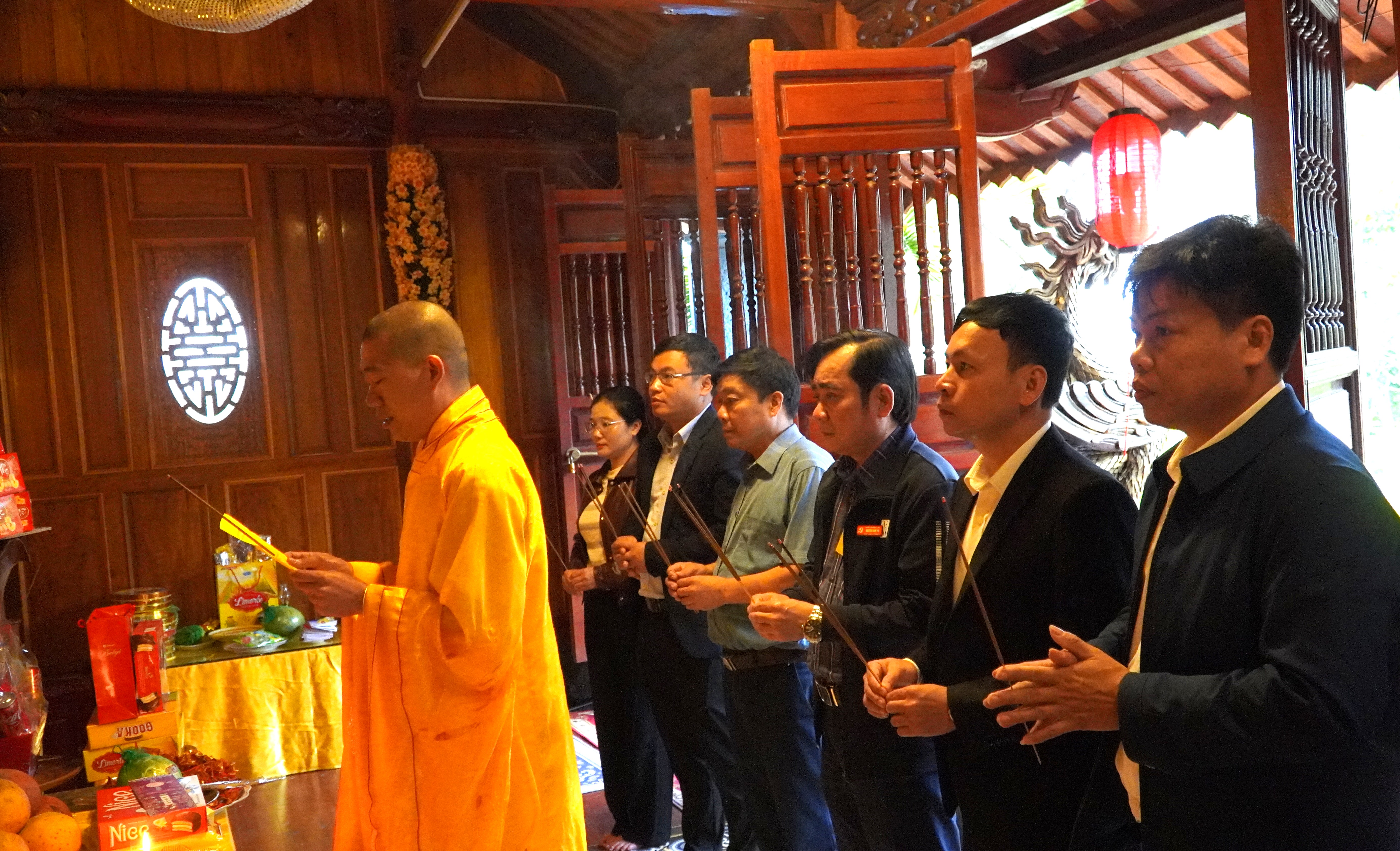 Sau khi hoàn thành nghi lễ dâng hương tại các Nhà bia, tượng đài liệt sĩ, đoàn đại biểu đã đến Chùa Bảo Lâm để dâng hương, cầu mong anh linh các anh hùng liệt sĩ phù hộ cho quê hương, đất nước ngày càng phát triển, đồng thời cầu mong cuộc bầu cử Đại biểu Quốc hội và HĐND các cấp nhiệm kỳ 2026 – 2031 diễn ra an toàn, dân chủ, đúng pháp luật và thành công tốt đẹp.