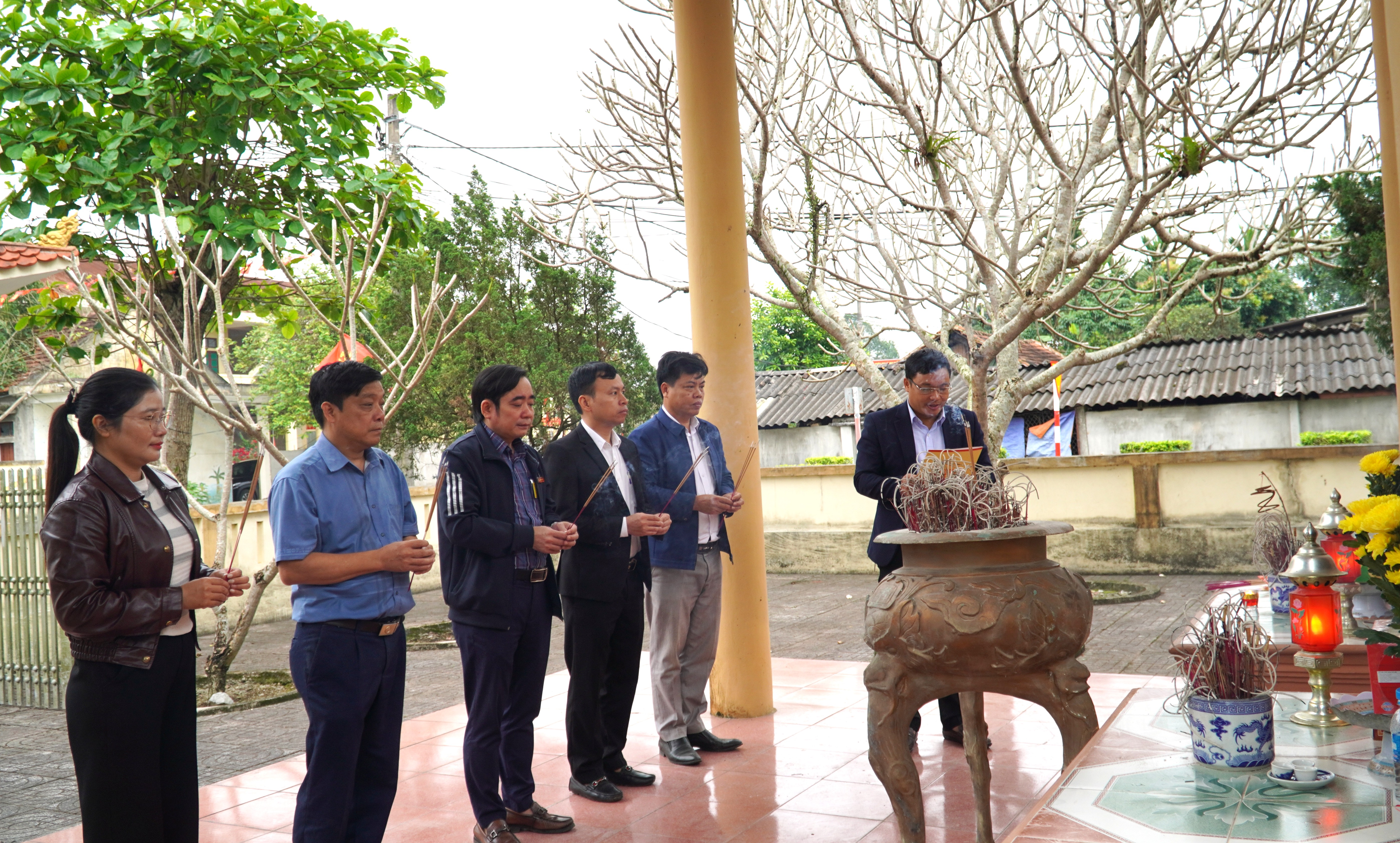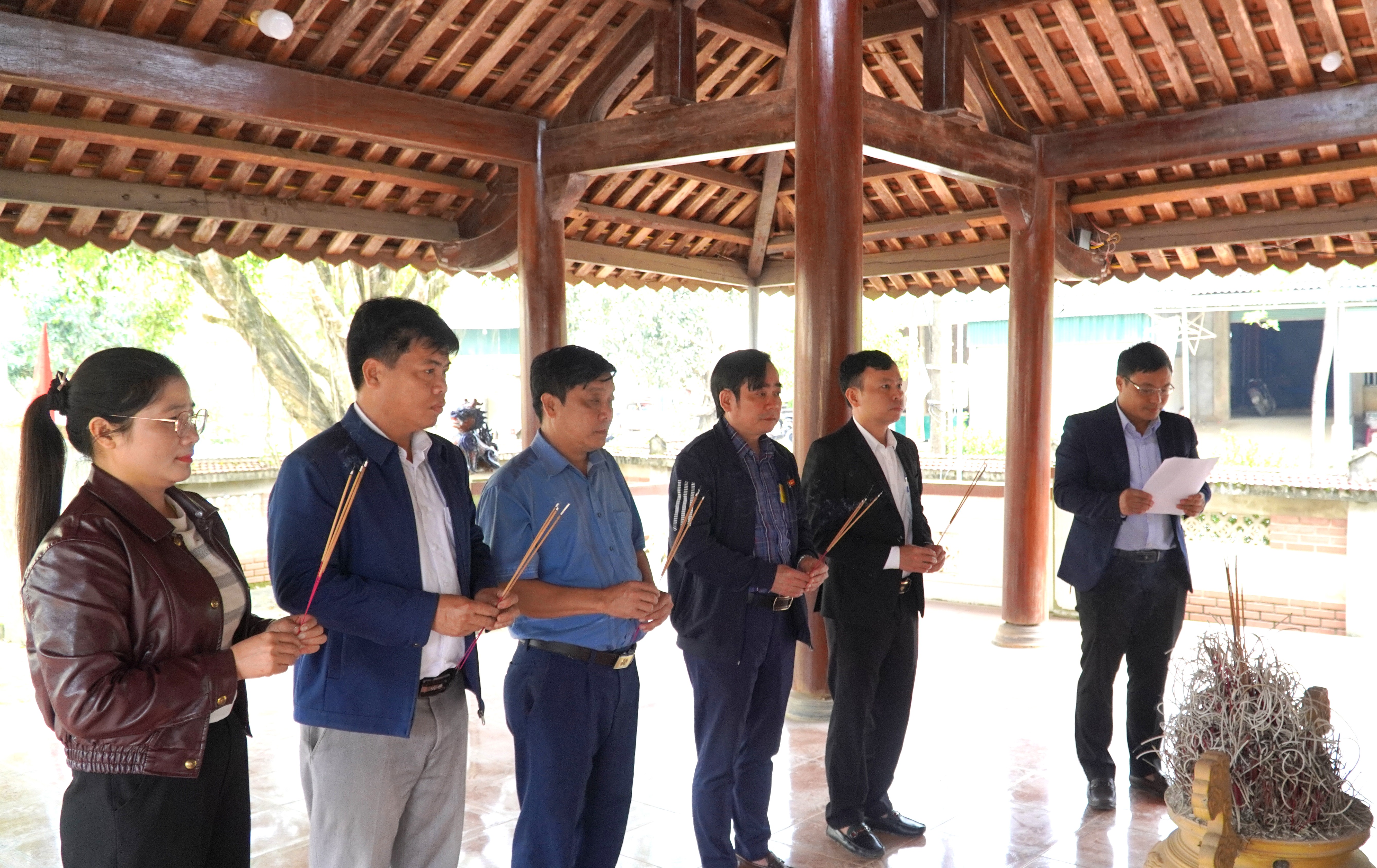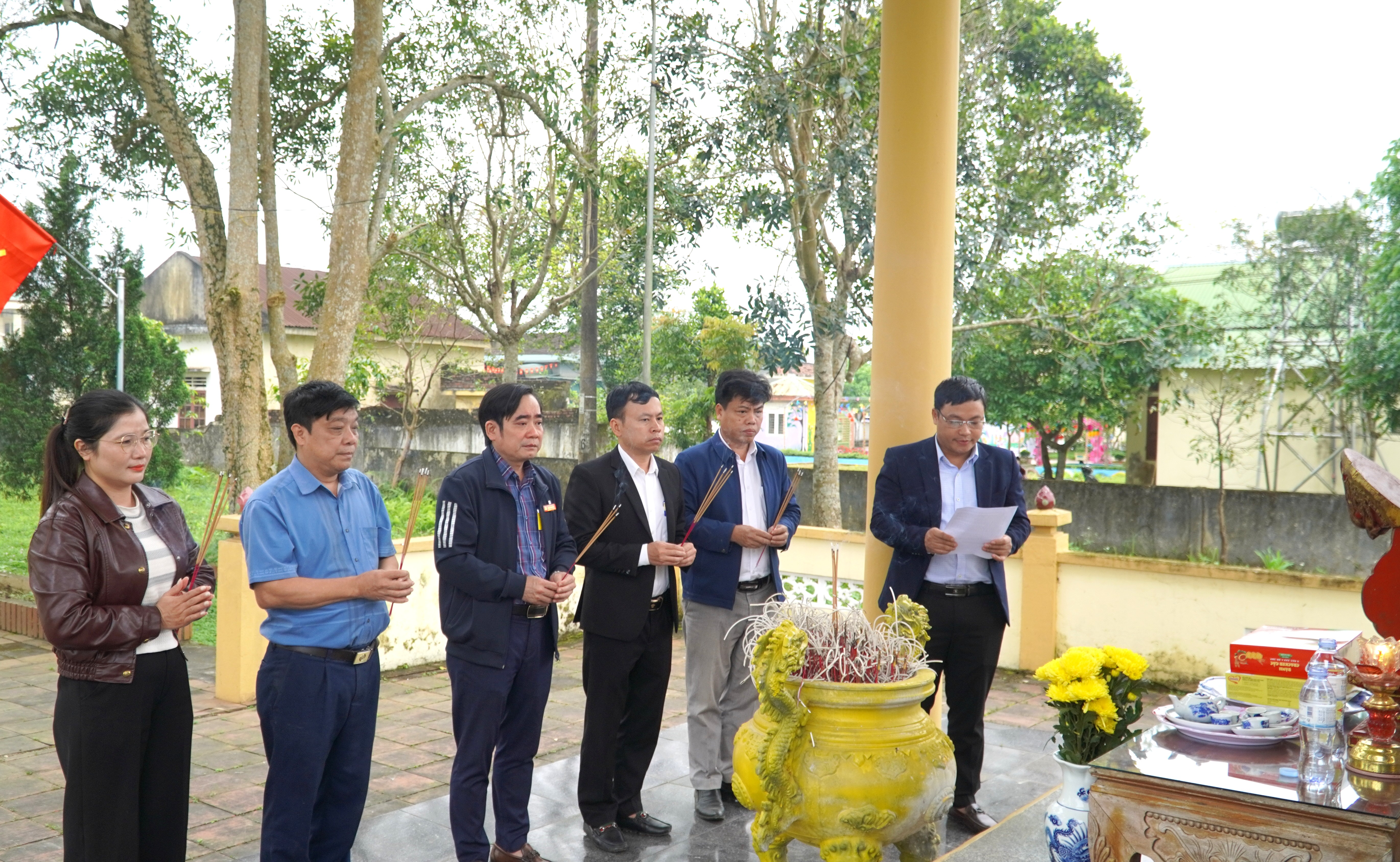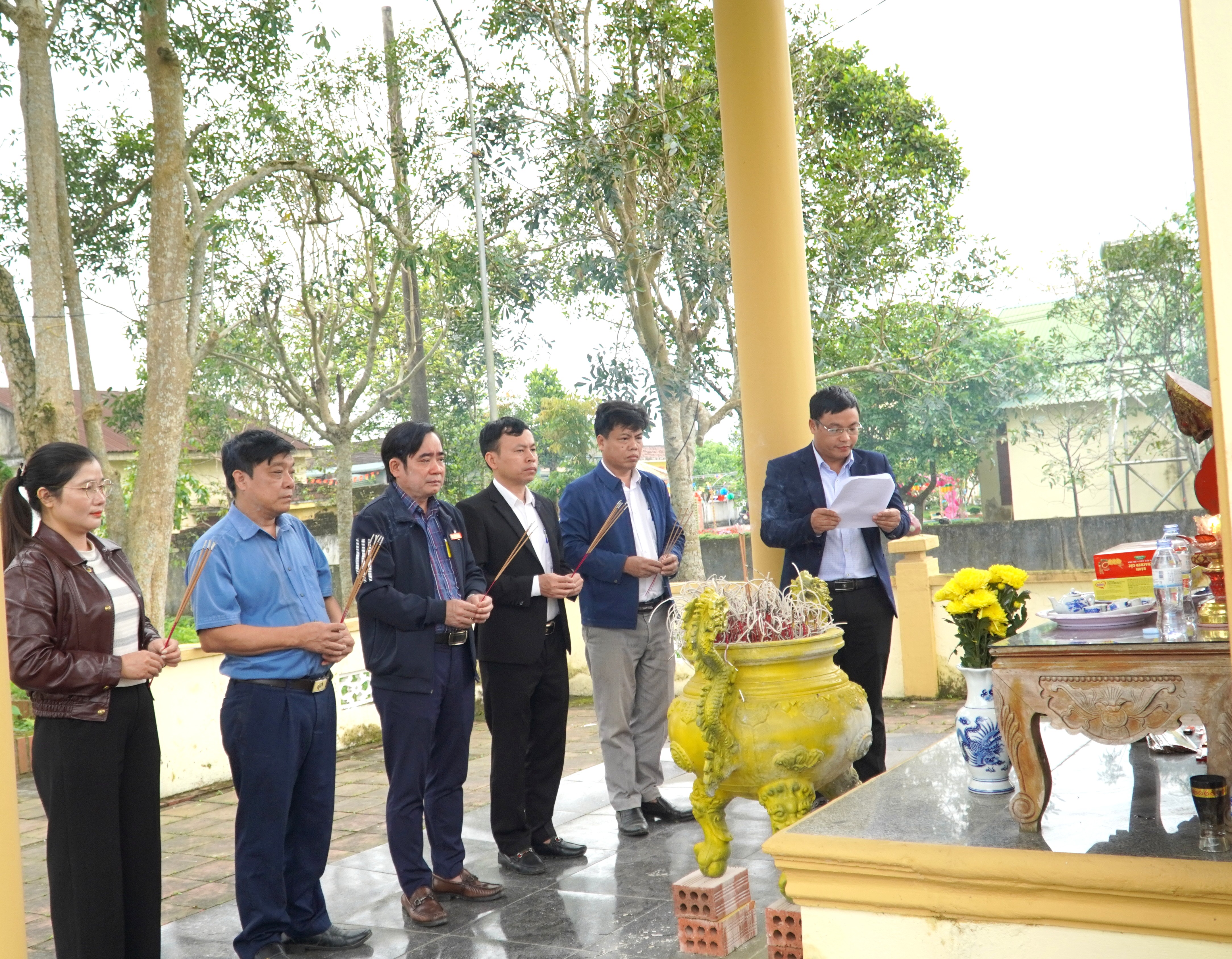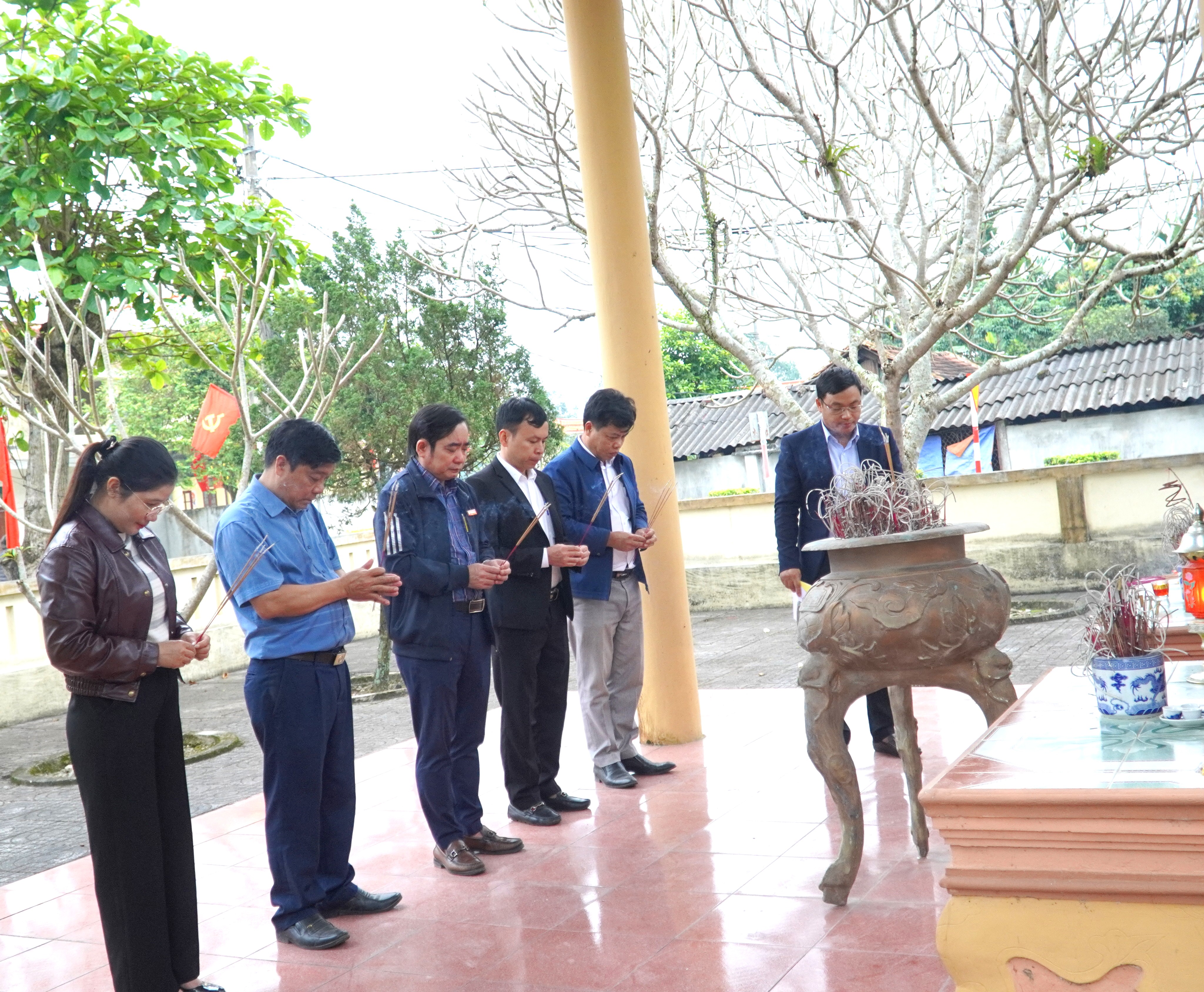 Đoàn do đồng chí Nguyễn Kim Tú – Bí thư Đảng ủy, Chủ tịch HĐND xã làm trưởng đoàn; cùng tham dự có các đồng chí trong Thường trực, Ban Thường vụ Đảng ủy; các đồng chí Ủy viên Ban Chấp hành Đảng bộ xã; lãnh đạo HĐND, UBND, Ủy ban MTTQ Việt Nam xã; đại diện các ban, ngành, đoàn thể, cơ quan, đơn vị và các thôn trên địa bàn.