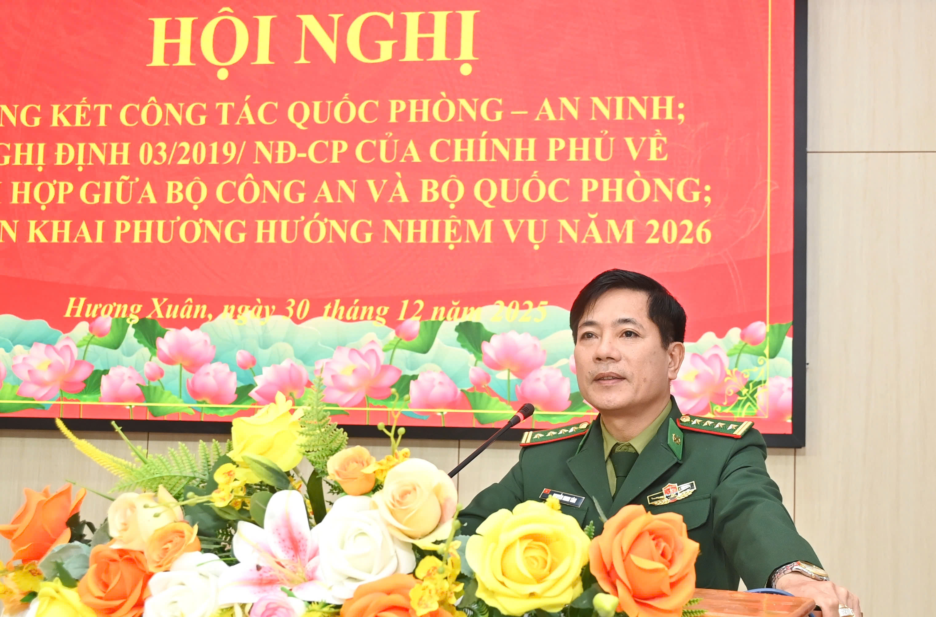 Phát biểu, chỉ đạo hội nghị, đồng chí Đại tá Nguyễn Minh Tâm – Phó Chỉ huy trưởng BCH BĐBP tỉnh Hà Tĩnh đã đánh giá cao những kết quả đạt được của xã nhà Hương Xuân trong thực hiện nhiệm vụ Quốc phòng – an ninh. Đồng thời, nhấn mạnh, năm 2026, là năm diễn ra nhiều sự kiện quan trọng của đất nước và của địa phương, là năm diễn ra Đại hội đại biểu toàn quốc lần thứ XIV của Đảng, Bầu cử đại biểu Quốc hội khoá XVI, Hội đồng nhân dân các cấp nhiệm kỳ 2026 -–2031.