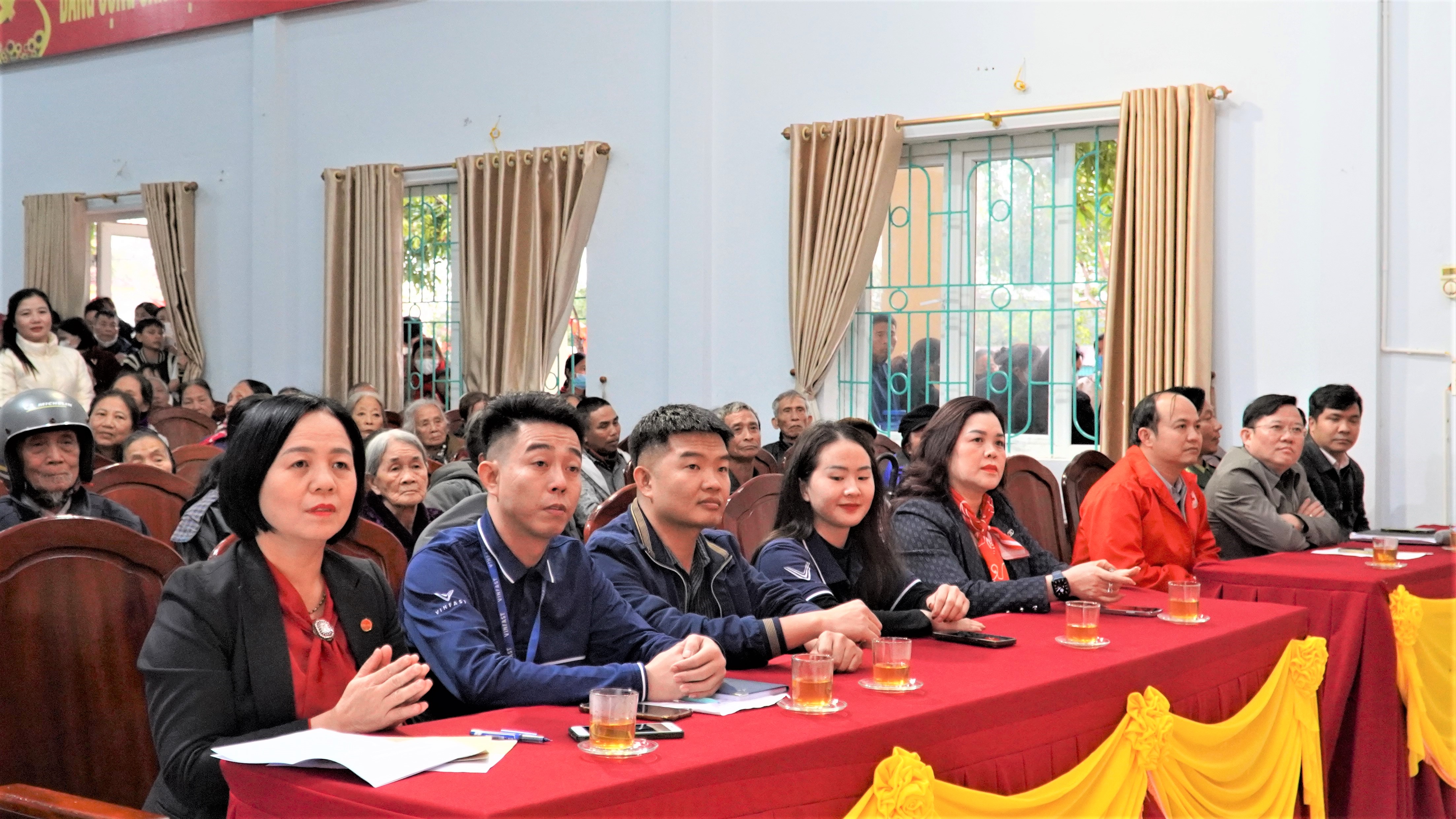 Cùng tham dự còn có đại diện Thường trực Đảng ủy, HĐND, UBND xã Hương Xuân; Ủy ban MTTQ xã; trưởng các tổ chức chính trị – xã hội xã; đại diện các bộ phận Văn hóa – Xã hội, Công an xã, Ban Chỉ huy Quân sự xã, Ban Chấp hành Hội Chữ thập đỏ – Bảo trợ xã hội xã; các trưởng thôn có hộ dân được nhận quà và đại diện 350 hộ gia đình đến nhận quà Tết.